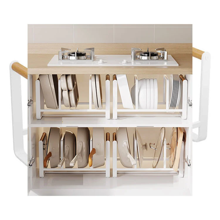 মাল্টি-কম্পার্টমেন্ট ডিজাইন পাত্র এবং তাদের ঢাকনা (বা অন্যান্য রান্নাঘরের পাত্র) একযোগে সঞ্চয় করার অনুমতি দেয়, "স্ট্যাক করা" এবং অগোছালো ব্যবস্থার প্রয়োজনীয়তা দূর করে।